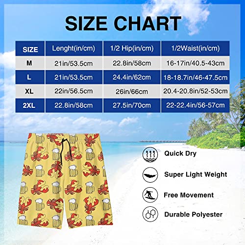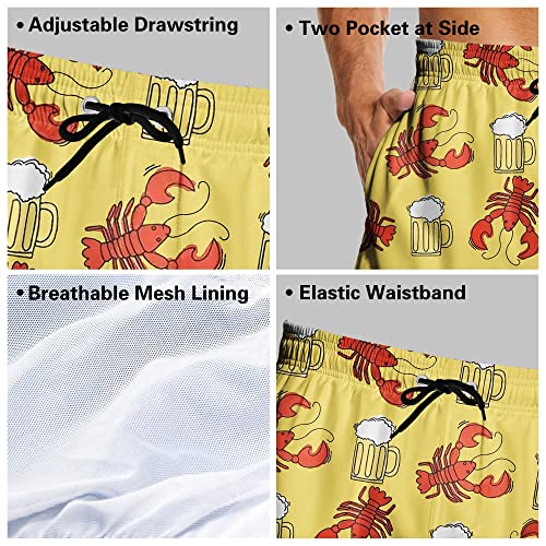 Men's Swim Trunks Beer and Crawfish speedy Dry Beach Short Swimwear Bathing Suits White