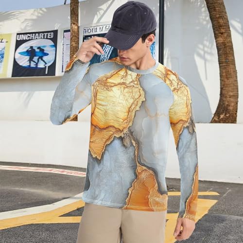 Marble Silver Orange Men's UPF 50+ Swim Shirts iconic Crew Neck Comfort UV Protective Clothing Water Fishing