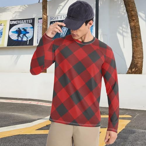 sizzling ! Merry Christmas Red Plaid Long Sleeves UPF 50+ Loose Crew Neck Elasticity Long Sleeve Sun Protection UPF 50+ Summer