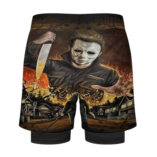 Men's Beach Trunks Pants Halloween Michael Myers Beachwear Hawaiian Bathing Mesh Suit Swimsuits Beach Shorts with Pockets