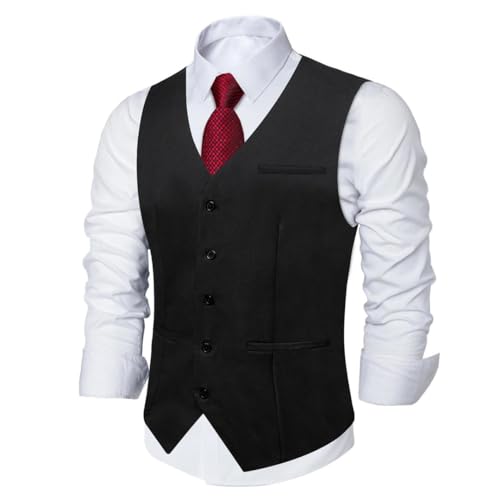 Men Black Rayon Polyester Suit Vest Wedding Party Formal Business Blazer Slim Waistcoat