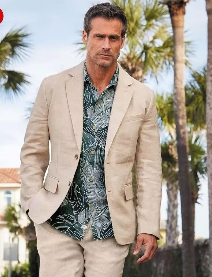 More information about Men's Linen Suit 2 Piece Slim Fit Beach Wedding Groomsmen Suits Lightweight Two Button Casual Blazer Pant Set