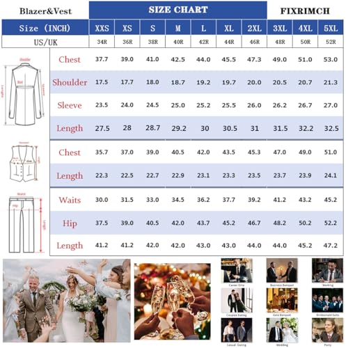 Fabric type: WovenCare instructions: Dry Clean OnlyOrigin: Imported【HOW TO CHOOSE SIZE】: Please carefully review the size table in the description to avoid wasting time and money during returns. If you are unsure, we strongly recommend that you inquire about the size first. You can tell us your height, weight, chest circumference, and waist circumference, and we will find the best size for you.【Adopting comfortable fabrics and exquisite craftsmanship】:We use Polyester material, The vest is made of premium faux leather material,which is very snug and comfortable. From head to toe, you will find that these suits are of exactly the same quality as our photos.Modern style: This outfit is more slim fitting, which can better showcase your body proportions and earn you more praise! A lovely bow with black trim is perfect for the groom's outfit. Fashionable and elegant. suits for season 9.Occasion:mens suit suitable for business meeting / wedding / party / graduation / proms / appointment / dating / dinner / christmas / halloween, it is easy to match any formal / business or casual dress shirt. It is a good gift for friend, father, brother and son.Care instruction: Dry clean,Non-chlorine bleach.We recommend you to hang on the Blazer Jacket When You do not Wear It Perfect for everyday use. High quality materials and excellent craftsmanship ensure long-lasting durability.