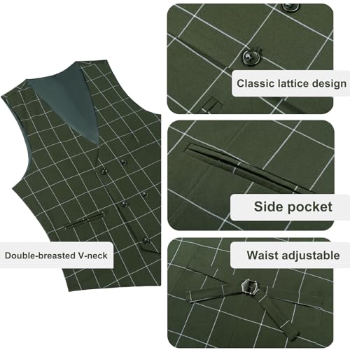 More information about Men's Slim Fit 3 Piece Plaid Suit Set,Business Formal Attire Solid Blazer Jacket Vest Pants