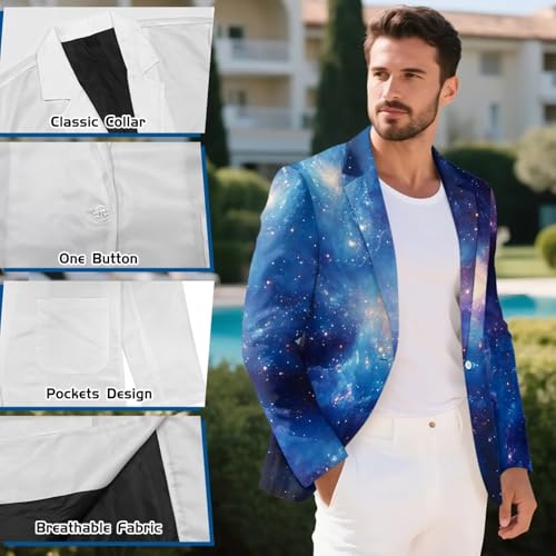 Fabric type: 100% PolyesterCare instructions: Machine WashOrigin: Imported【Material】Crafted with ultra-soft polyester-spandex blend, this men's blazer offers 4-way stretch for unrestricted movement. The breathable, moisture-wicking fabric lays flat against skin – no itching or irritation during all-day wear【Wrinkle-Free Ready】Engineered with wrinkle-resistant technology, this suit jacket maintains sharp lines even after hours of sitting. Perfect for travel: simply unpack and wear. Low-maintenance fabric saves time and dry-cleaning costs【Functional Design】Features two side pockets with reinforced stitching to securely hold phones/wallets without bulging. new-age notch lapels, single-button closure, and rear vents ensure airflow while enhancing your silhouette. Tapered sleeves accommodate watches comfortably【Versatile Styling】Pairs effortlessly with dress shirts for boardroom meetings, tees for weekend brunches, or turtlenecks for evening events. Transitions seamlessly from weddings to offices to vacations – one jacket for 10+ occasions【Sizes】From Slim (S) to Big & Tall (5XL), our classic fit enhances all body types. the classic fit enhances your silhouette without restricting movement, the cut is fitted. Check our size chart for your perfect fit Perfect for everyday use. premium materials and excellent craftsmanship ensure long-lasting durability.