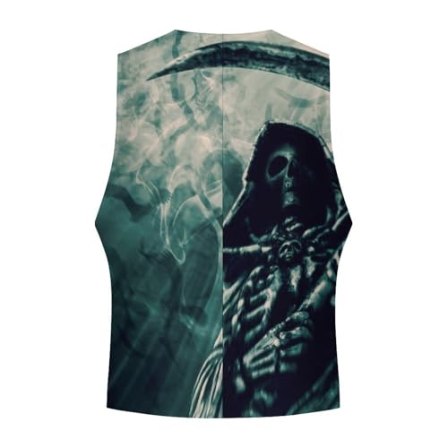 Grim Reaper Men's Suit Vest Slim Fit V-Ncek Waistcoat Business Casual Vest