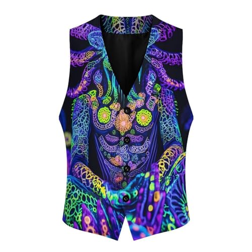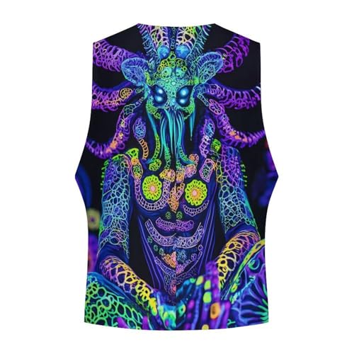 sizzling ! Evil God Psychedelics Suit Vest for Men Slim Fit Sleeveless Jacket V Neck Business Waistcoat Button Up Dressy Top
