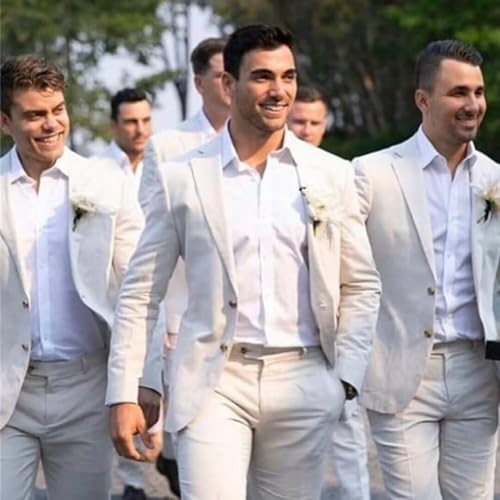 More information about Men's Linen Suit Men 2 Piece Suit Jacket Pant Set Casual Suits for Men Groomsmen Wedding Prom Mens Summer Suits