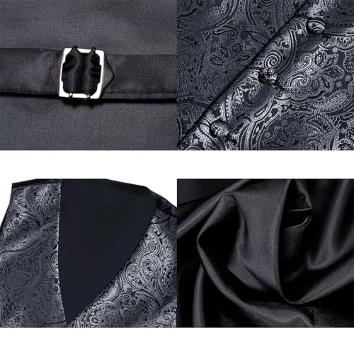 Men's Paisley Silk Waistcoat Tie Hanky Cufflinks Set Textured Sleeveless Vest for Business Wedding