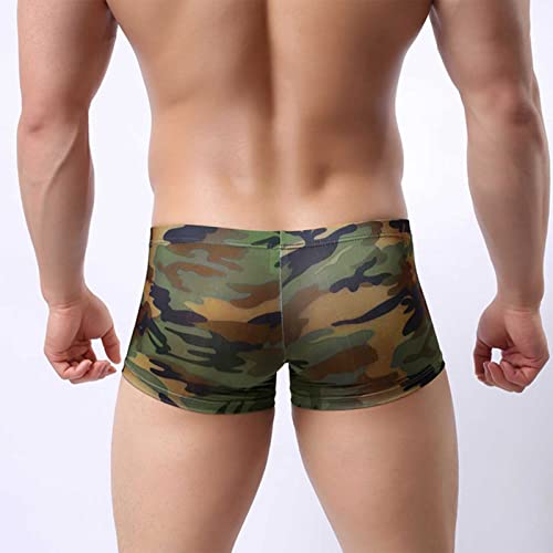 Ctreela Short Leg Boxer Briefs for Men Sexy Bulge Pouch Trunks Camo Underwear Low Rise Underpants Breathable Boxers
