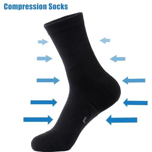 Fabric type: 65%Cotton,20%Nylon,10%Polyester,5%ElastaneCare instructions: Machine WashOrigin: ImportedPattern: SolidPremium Cotton Comfort: Glenmearl mens compression crew socks are made of 65% premium cotton, which is soft and comfortable, and has an excellent next-to-skin fit. Perfect for daily wear, they have just the right amount of warmth and breathability to keep your feet comfortable in all activities, and fit all sizes/types of shoes.Enhanced Durability: These running socks are designed with reinforced toes and heels to withstand high-friction areas, ensuring longer life. This durability makes them a great choice for work, sports, and other activities where durability is key.Enhanced Cushioning: Glenmearl men's mid-calf athletic socks feature full-foot terry cushioning, providing superior warmth and protection. Perfect for daily wear, they are great for hiking, running, and various sports.ARCH SUPPORT:Glenmearl work socks feature excellent arch support to reduce fatigue and improve circulation. Whether you're on a long hike, busy at work or just enjoying a run, they'll help you stay energized and comfortable throughout the day.Moisture-Wicking Sweat Control: Our walking socks are made from high-quality cotton and rare weaving technology to effectively control sweat and keep your feet dry. Suitable for many occasions, whether you are hiking, running or playing any sport, they have excellent breathability. Perfect for everyday use. premium materials and excellent craftsmanship ensure long-lasting durability.