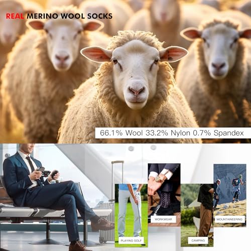 • ✅ 【Premium Material | Ultimate Comfort】: Made with 66.1% Australian Merino Wool for exceptional softness, blended with 33.2% nylon and 0.7% spandex for outstanding stretch and shape retention. The natural wool fibers provide breathable temperature regulation for all-day comfort in any season.