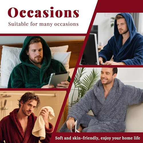 U2SKIIN Men Plush Fleece Hooded Robe, gentle thermal Long Bathrobe with Pockets, Cozy Shower Robe for Men Loungewear