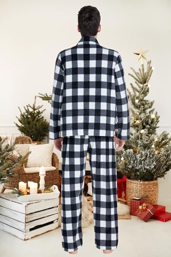 dressfan 2 Piece Unisex Plaid Pajamas Set,Quarter Zip Thermal Pajamas Pullover Christmas PJS Set for Family Couples