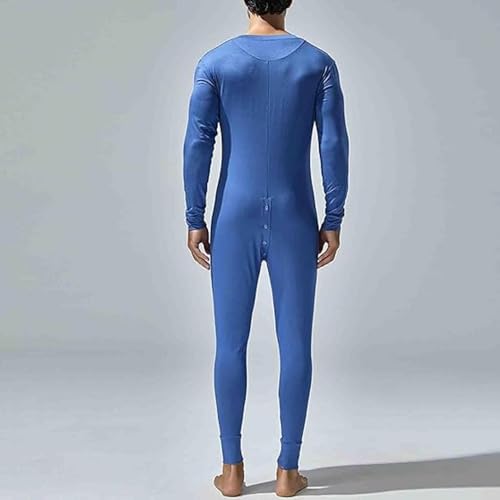 Men's Long Sleeve Pajamas Striped Ultra gentle Thermal Union Suit One Piece Slim Fit Button Down Jumpsuit Sleepwear