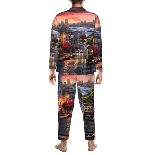 KIROJA San Francisco Print Pajamas Set For Men/Women,Casual Loose Homewear Set V-Neck Long Sleeve Shirt Pj Pants