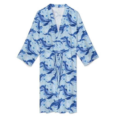 Whale Funny Men's Robe gentle Lightweight Bathrobe Long-sleeve Spa Robes