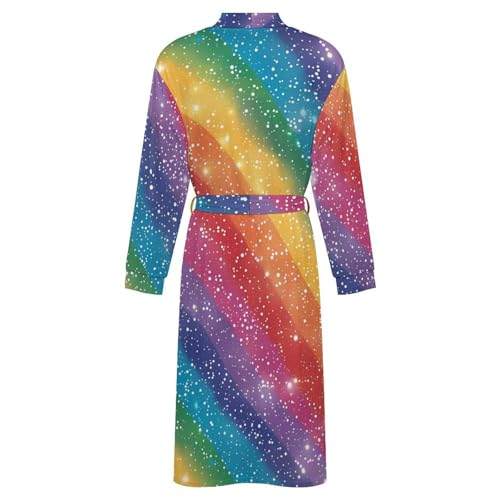 sizzling ! Glitter RainBow Pattern plush Robe Long Sleeve Bathrobes V Neck Sleepwear Spa Robes with Belt Men Woman