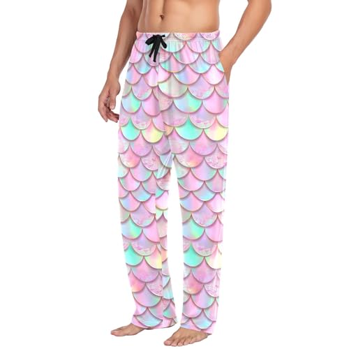 sizzling ! Men's Pink Mermaid Scales Pajama Pants with Pockets,Cotton Sleep Lounge Pant Men Pajama Bottoms S