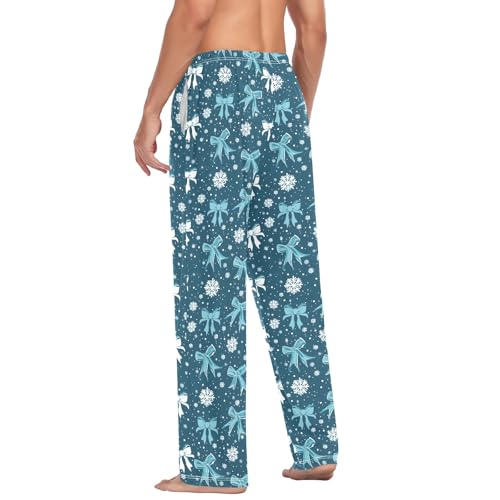 Mens Cotton Pajama Pants Sleep Lounge Pj Bottoms Sleepwear with Pockets Drawstring S White Blue Bow Snowflakes