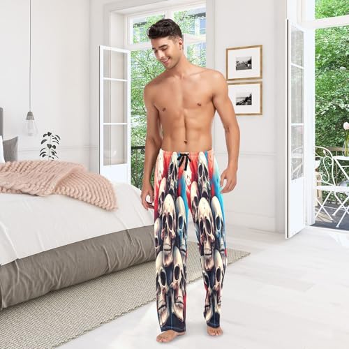 Qilmy Skull Men's Cotton Pajama Pants, Lightweight Lounge Sleepwear with Drawstring and Pocket