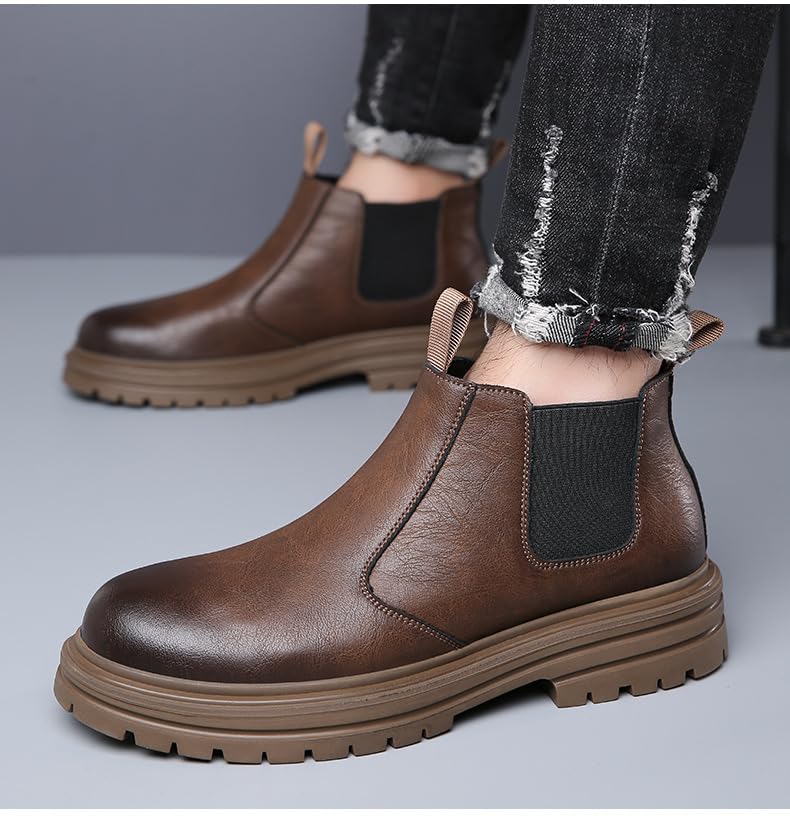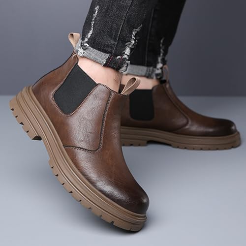 • 4. [Versatile Style: From Office to Evening]:--- The sleek round toe and iconic Chelsea boot silhouette offer timeless sophistication. Seamlessly transition from professional business meetings to casual outings or dressy evening events. A versatile essential for any contemporary man's wardrobe.
