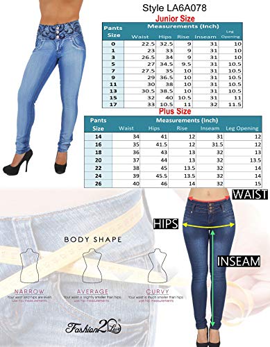 Fabric type: 77% Cotton, 20% Polyester, 3% SpandexOrigin: ImportedClosure type: ZipperInseam: 32 InchesTHE SEXIEST WOMEN'S JEANS: Are you looking for a pair of women's denim pants that will enhance and show off your bootylicious curves? Fashion2Love has specially designed these Colombian style skinny jeans for those women who have a Brazilian bum, as well as for those women who wish to make their butt look rounder and more worked out. Whenever you will be wearing these high / low waisted jeans, your silhouette will look sexier than ever! Shaping, slimming, raise up, stretchier contour chic look.FULL LENGTH SKINNY JEANS: Our stretch jeans have a skinny leg cut, so they are fitted and they will hug every curve of your legs and waist perfectly. Thanks to their tight yet comfortable design, these juniors / Plus size clothing jeans for women can be worn with any kind of shoes - high heels, sneakers, platform, flat shoes, high and ankle boots. And since they are full-length, Fashion2Love high / low waist jeans will not make your legs look shorter. On the contrary your legs will look leaner.A UNIQUE FABRIC BLEND: Here at Fashion2Love we have used premium quality fabrics in order to create a breathable, stretchable and comfortable blend. More specifically, our soft Colombian style jeans are made with the finest materials. Once you wear them, you won't want to take them off! Apart from comfortable, this fabric is also durable, so it can be washed and it will never lose its softness, elasticity, and push up design. Comfortable levanta cola booty enhancing jeans lifted butt.WEAR THEM FROM MORNING TO NIGHT: These super skinny jeans for women can be worn at any hour of the day, and they can be matched with any top you want! Do you want to be casual? Just wear a T-shirt or a sweatshirt on top. Do you want to go out? Wear a nice top and add some accessories? Do you have a professional meeting? Wear a shirt or a blazer on top. In other words, with these stylish women’s denim pants you can create multiple outfits and combinations! Flattering shapewear for your booties.3 BUTTONS ON A WIDE WAISTBAND ** lovely HEAVY EMBROIDERY ON WAISTBAND ** IMITATION FRONT POCKETS ** NO BACK POCKETS ** THESE FATTERING WOMEN JEANS makes your buttocks round, fuller, rounder and firmer with a nice boost support. Femenina cintura confortable algodón y spandex y alta calidad ultima tendencia en moda jeans. Alzar tu cola, jeggings levantacola ropa para mujer, pantalones colombianos cintura alta. Perfect for everyday use. premium materials and excellent craftsmanship ensure long-lasting durability.