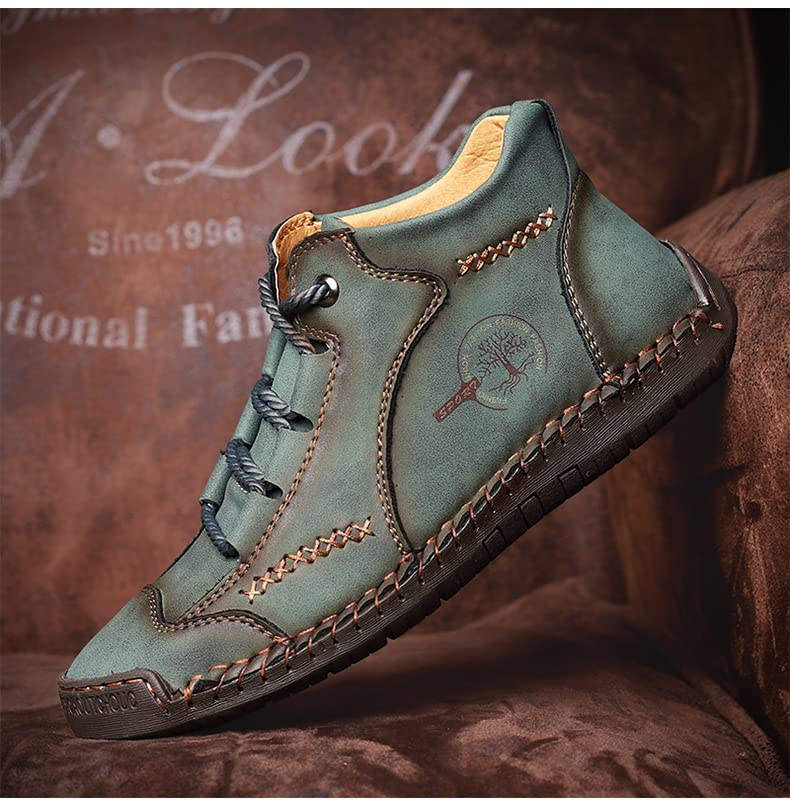 Men's Vintage Mid Seam Leather Boots,Casual Ankle Chukka Boots,Lightweight Lace Up Sneakers Loafers Walking Shoes