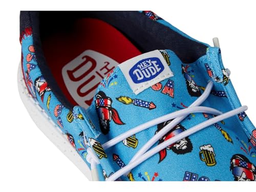 • Let freedom ring...all night long! Featuring an epic Americana party print, these travel-ready Hey Dude Wally Americana Party sneakers boast an straightforward-on system, elasticized laces, and a lightweight, flexible outsole for all-day celebrating. So, raise