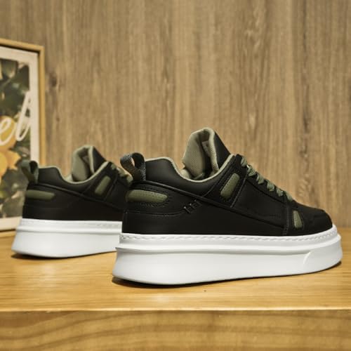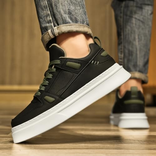 More information about Men's Fashion Leather Mid Top Lace-Up Platform Sneakers Trendy Retro Skateboard Comfy Non Slip Walking Tennis Daily Shoes
