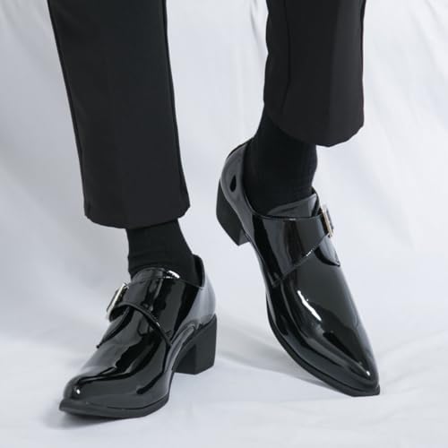 Men's Patent Leather Chunky Heels Dress Loafers with Monk Strap present-day Pointed Toe Tuxedo Oxford Shoes for Formal Business Office Church