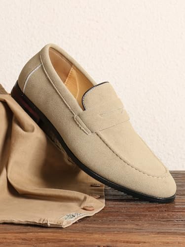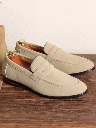 sizzling ! Santimon Penny Loafers for Men, PU Velvet Leather, Moc Toe, Slip-On Dress Casual Office Shoes