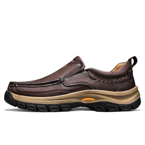 Men's Slip-On Loafers Casual Walking Shoes Comfort Leather Moccasin Style with Rugged Sole Work Office Dress Outdoor