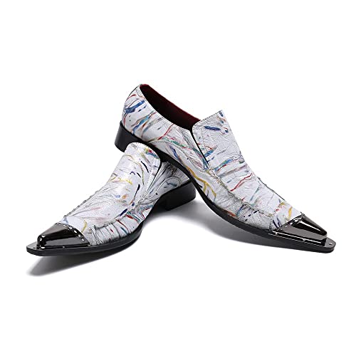 sizzling ! Slip On Pointed Metal Toe Geunine Leather White Color Block Heel Casua Men's Loafer for Walking