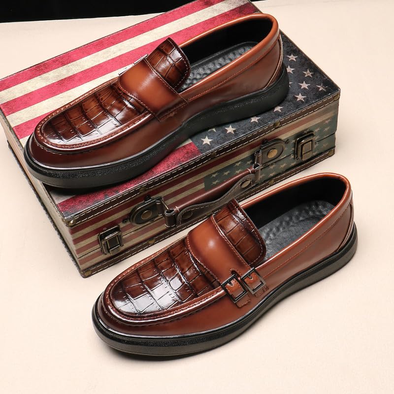 sizzling ! Santimon Men's Crocodile Print Loafers Double Buckle Strap Slip-On Dress Shoes plush Casual Moc Toe Driving Shoes