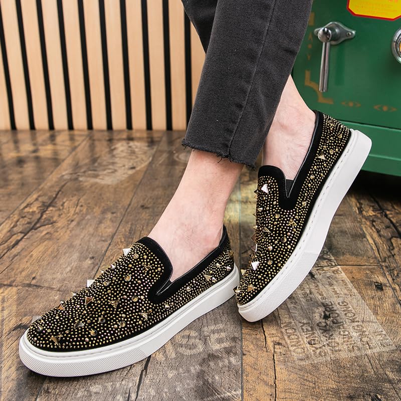 More information about latest Luxury Designer Men's Hip-hop Slip On Platform Embroidery Rivet Causal Shoes Flats Male Rock Punk Loafers Zapatos Hombre