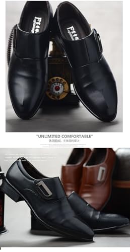 Monk Strap Shoes Men iconic Retro Formal Business Loafer Dress Shoes Lightweight Leather Slip On Elegant High Heel Pointed Plain Toe Buckled Pull-on Comfort Wear Office Oxford Casual Wedding Footwear