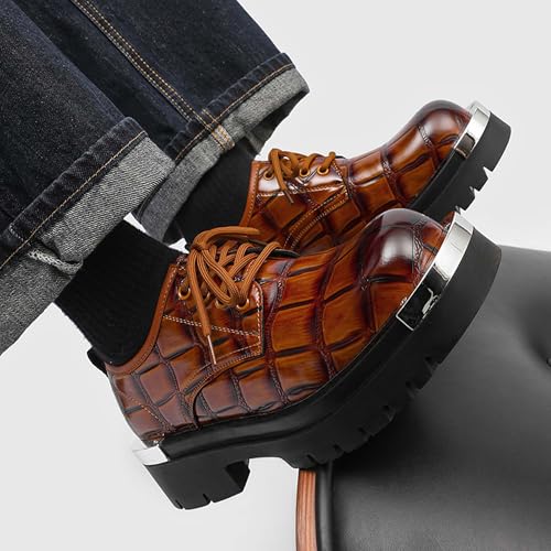 Sole material: RubberOuter material: LeatherClosure type: Lace-UpCLASSIC STYLE: Our men's retro thick-soled classic oxford shoes have novel design, and the upper is designed with hand-stitching to ensure that the shoes are durable, which is an excellent choice for fashionable men's daily outings and business parties.EASY TO PUT ON AND TAKE OFF: Men's fashion low-top derby dress shoes adopt lace-up design, which can be adjusted at any time to fit your feet, and the laces can also be hidden as a slip-on shoe, easy to put on and take off.Comfortable PU Insole: Men's formal Oxford shoes use PU soft insoles with massage particles, Which are soft, Comfortable and breathable, And can fit the feet better. The outsole is lightweight, Increasing comfort and reducing foot fatigue.Four-season Matching: Soft, Breathable, Shock-absorbing, Suitable for all seasons, Ergonomic and easy to control, Bringing breathability to your feet, And can be easily matched with various outfits.SUITABLE FOR VARIOUS OCCASIONS: This men's formal Oxford shoes can be easily worn in meetings, work, formal business, parties, weddings, friends gatherings and other occasions. I believe you will be the focus of the audience. Perfect for everyday use. High quality materials and excellent craftsmanship ensure long-lasting durability.