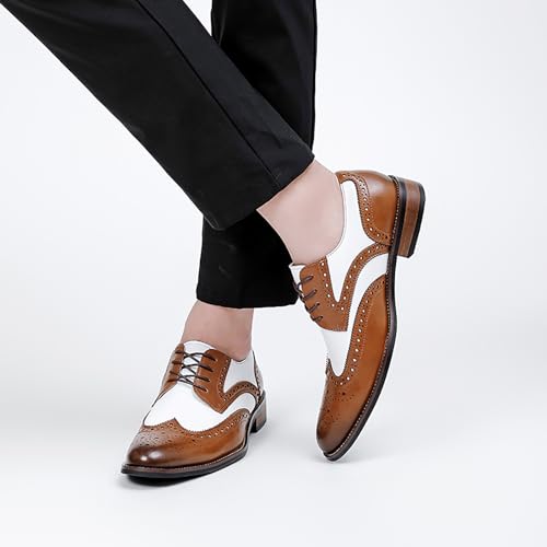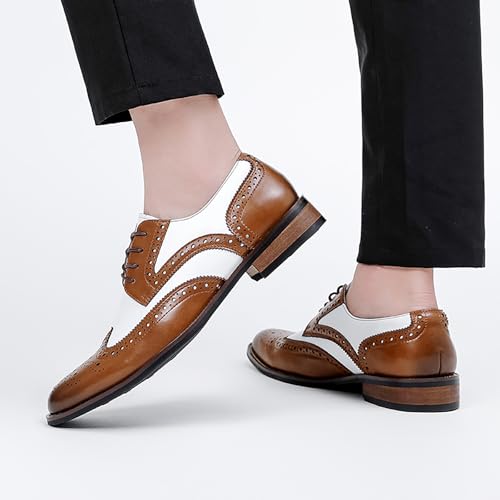 Why Choose Men's Genuine Leather Brogue Shoes, British Black and White Wingtip Derby Dress Shoes?