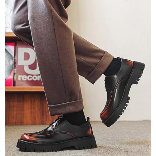 Men's Patent Leather Chunky Platform Oxford Shoes Retro Round Toe Lug Sole Non-Slip Lace-Up Business Work Wedding Formal Shoes