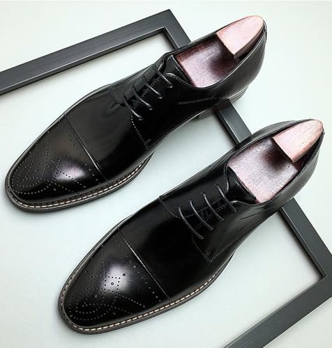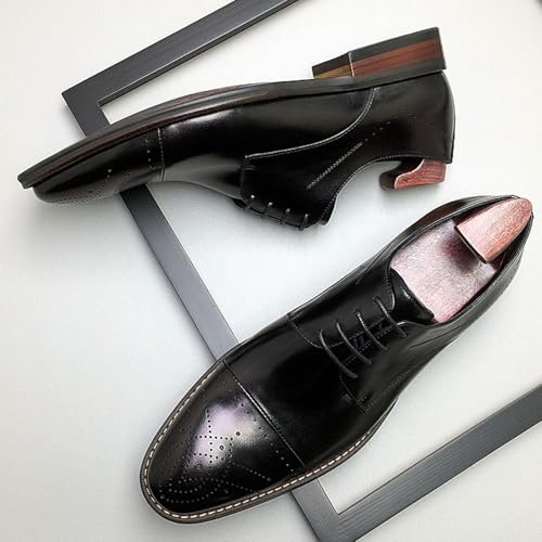 Santimon Men’s Genuine Leather Oxfords Dress Shoes – Handcrafted Cap-Toe Derby Shoes for Formal, Tuxedo, Prom, Wedding & Business Casual