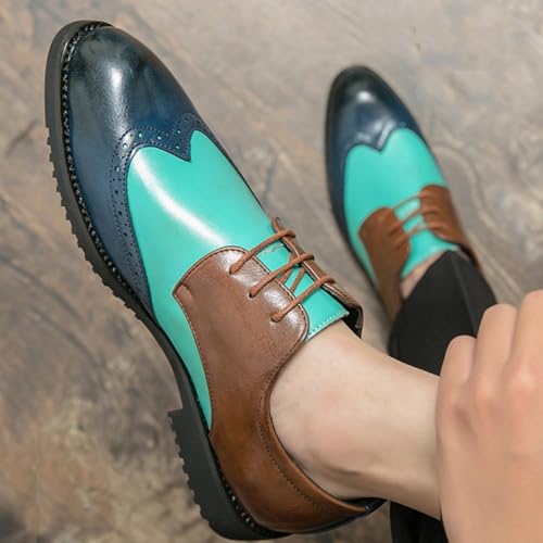 Mens Retro Brogue Multicolor Leather Dress Oxfords Shoes Low Top Non-Slip Pointed Toe Casual Wingtip Derby Shoes for Formal Business Wedding