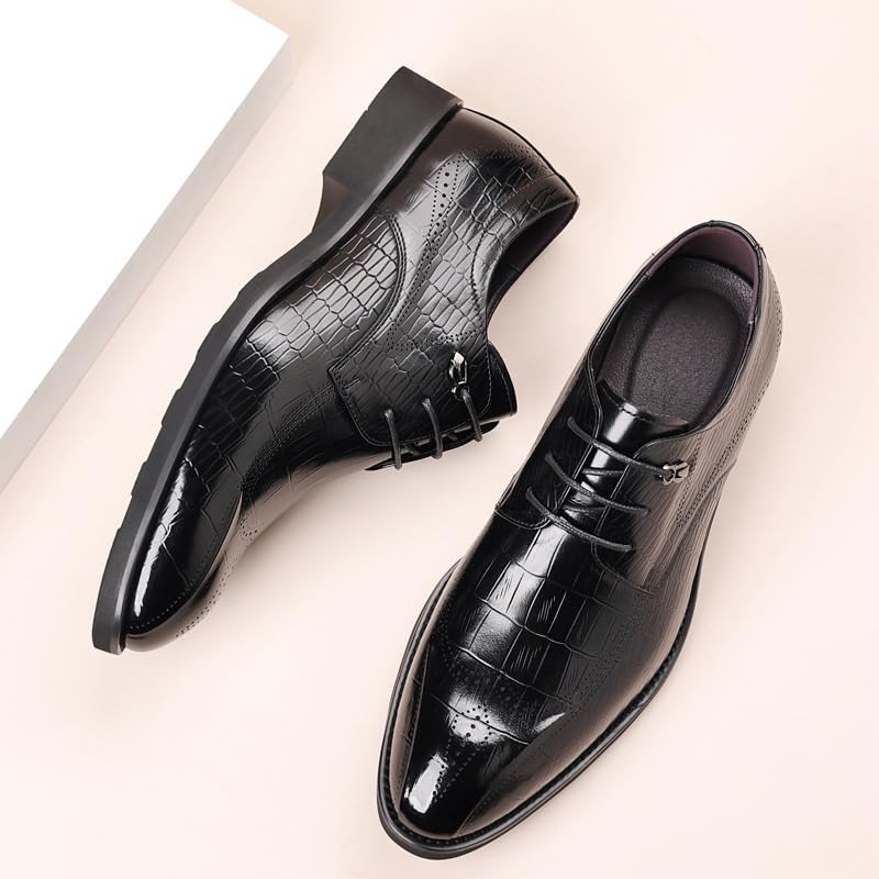 Men's Vintage Crocodile Print Strap Slip On Dress Shoes iconic Casual Lace Up Round Toe Lug Sole Dress Derby Shoes