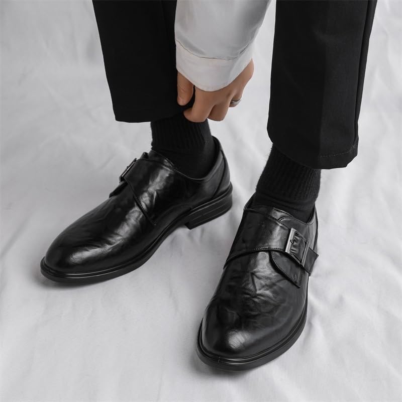 Casual Business Walking Shoes for Men Dress Oxford for Mens Slip On Pointed Toe Vegan Leather Solid Color Monk Strap Rubber Sole Block Heel Non Slip Resistant Working